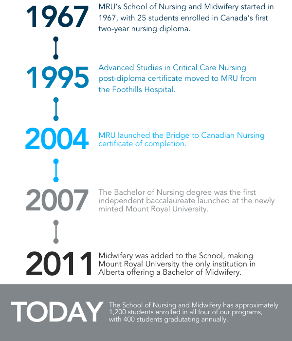 The School of Nursing and Midwifery has a long history and strong affiliation with our alumni. Throughout the years, our programs have been known for their “firsts’ in Alberta and Canada.