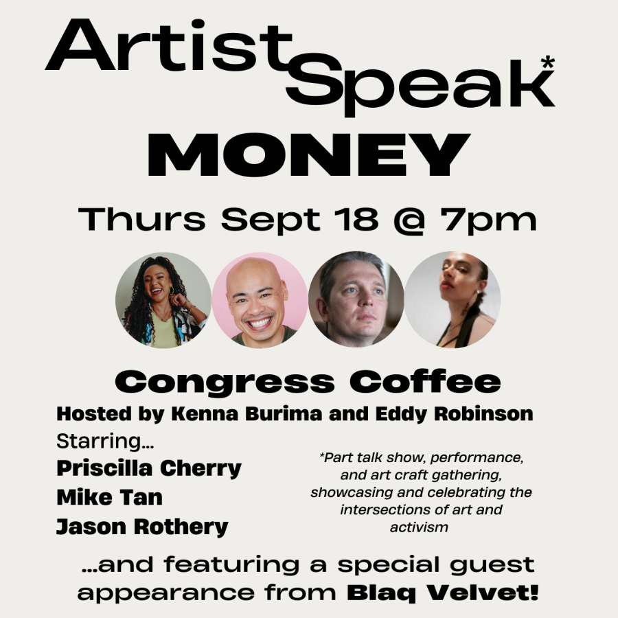 Join hosts Kenna Burima and Eddy Robinson as they delve into the intersections of money and creativity. The evening features an incredible line up of artists sharing how money, creativity and art intersect.