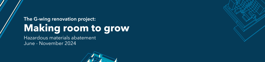 Those in areas adjacent to G-100 do not need to wear any personal protective equipment (PPE). The abatement is taking place in specially constructed containment areas by qualified workers in appropriate PPE. Signage at entry points indicate where this work is taking place and that the space is restricted. Please respect these signs for your safety and that of others.