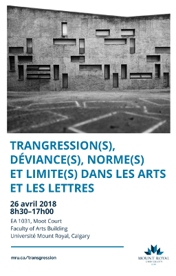 - Journée d’étude “Transgression(s), déviance(s), norme(s) et limite(s) dans les arts et les lettres” le 26 avril 2018
