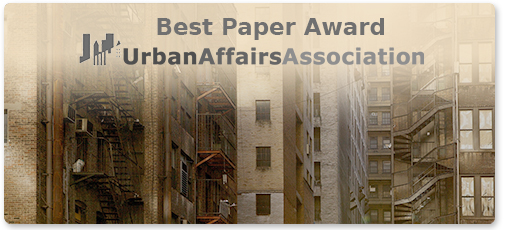 Timothy Haney, Assistant Professor of Sociology, was recently selected as this year's recipient of the "Best Paper Award," from the Urban Affairs Association. The award will be conferred at the UAA's annual meeting in San Antonio, TX in March 2014. It is given each year to the best paper published in the Journal of Urban Affairs, the official journal of the Urban Affairs Association.