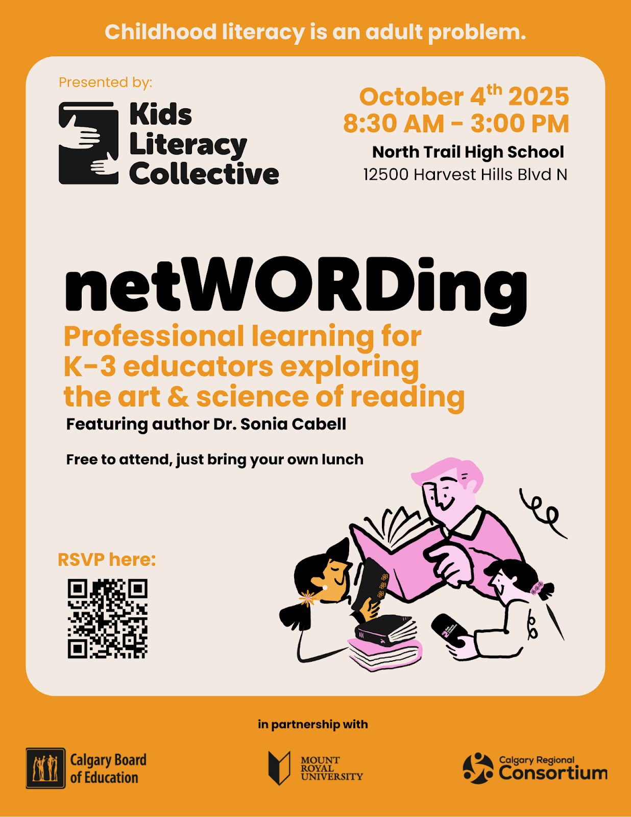 The second annual NetWORDing professional learning day focused on “exploring the art and science of reading for K-3 teachers.” Held on October 4, just two days before the beginning of the teachers’ strike, the event was packed with 230 educators who spent their Saturday learning together. The event represents a unique collaboration between the Calgary Board of Education, Mount Royal University, the Kids’ Literacy Collective, and the Alberta Professional Learning Consortium.