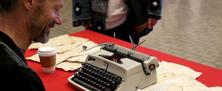 Drawn by the recognizable sound of typewriters and the unexpected spectacle of poets writing out loud, on Aug. 9 more than 100 people were treated to a personal poem on a topic of their choosing in downtown Calgary. The event, dubbed “Pop-Up Poetry,” was Mount Royal’s way of bringing poetry back to the people … both physically and literally.