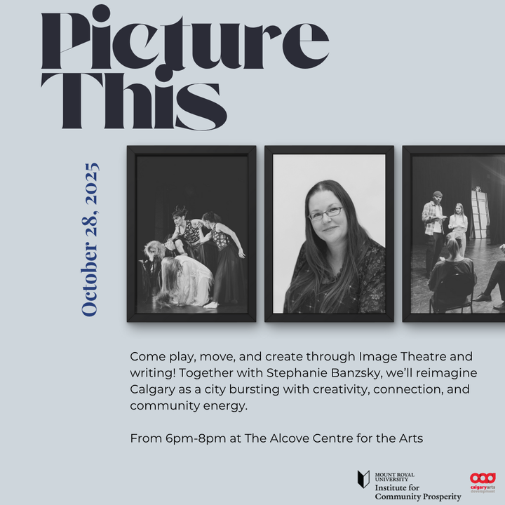 Stephanie will lead us through a fun evening of play and conversation around the theme of "Blue Sky City." Using Image Theatre and writing techniques we will talk about how to make Calgary a vibrant space with opportunities for creativity, connections, nurturing community activities, and activating spaces.